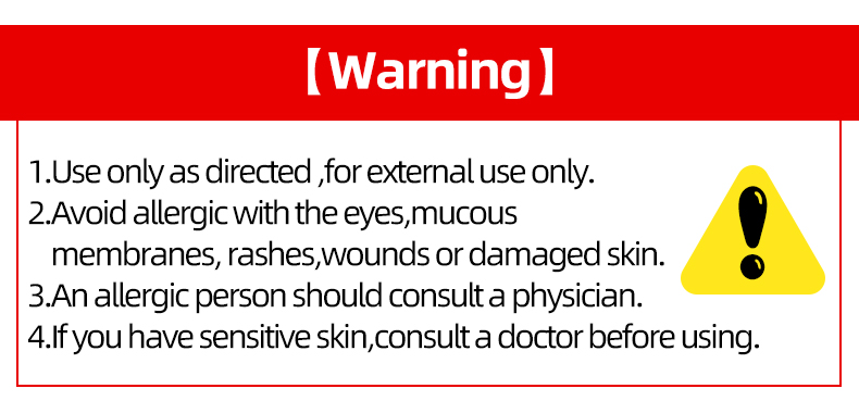 This product is intended for external use only. Individual skin sensitivity may vary. If you experience redness, irritation, or any form of discomfort, discontinue use immediately. We do not accept responsibility for any allergic reactions or skin infections that may occur. Please consult a qualified healthcare professional before use, especially if you have sensitive skin, existing medical conditions, or are using any other topical treatments.